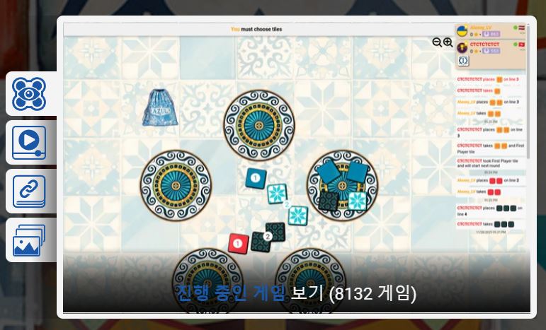 토너먼트 : 다른 플레이어들이 개최한 토너먼트 대회에 참여할 수 있습니다! ELO 점수가 100 이상인 게임들에 한해 참여할 수 있습니다